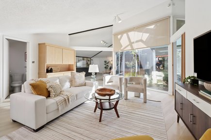 This custom-designed home on highly desirable Elmwood Drive in Central Davis was designed by architect Richard D. Cramer, who chaired UCD’s art department for 15 years. Featuring an interior atrium open to the sky and a unique open concept, one can pass from the front door to the back garden without any obstructing walls. The amenities of this 2,066 square feet home, located on a large 9,583 square foot lot, include 3 bedrooms, 2.5 bathrooms, an airy feel with lots of natural light, a welcoming den with fireplace and built-in bookshelves, new interior paint and baseboard, new carpet and LVP flooring, a living or dining area with built-in hutch and views to the backyard. Additional features include a master bedroom with walk-in closet, transom windows, 2 large storage closets, a 1-car carport, and a money saving 4.55Kw solar system. The drought-tolerant landscaped front and the backyards with mature fruit trees and a grape-vine covered trellis make this house ready for your move in. Walk or bike to campus or downtown from this home on a wide and tree-lined street, in a neighborhood with many families and an annual Memorial Day block picnic… Come see for yourself!